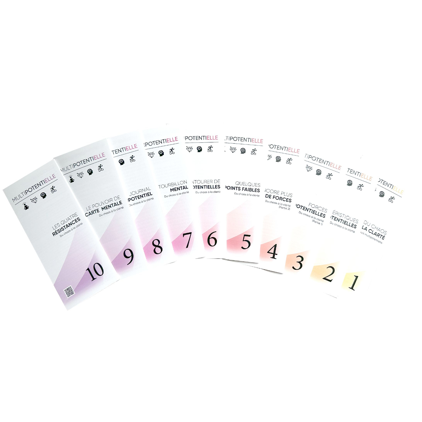 Voici la description détaillée du contenu de chaque feuillet que tu reçois pour naviguer efficacement à travers ta multipotentialité et réaliser ton plein potentiel :